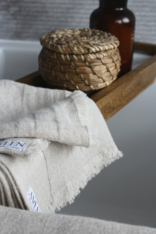 Elevate your skin care and feel the touch of nature with our luxurious range of Linen bath and hand towels. Create a matching set to indulge in spa like experience.