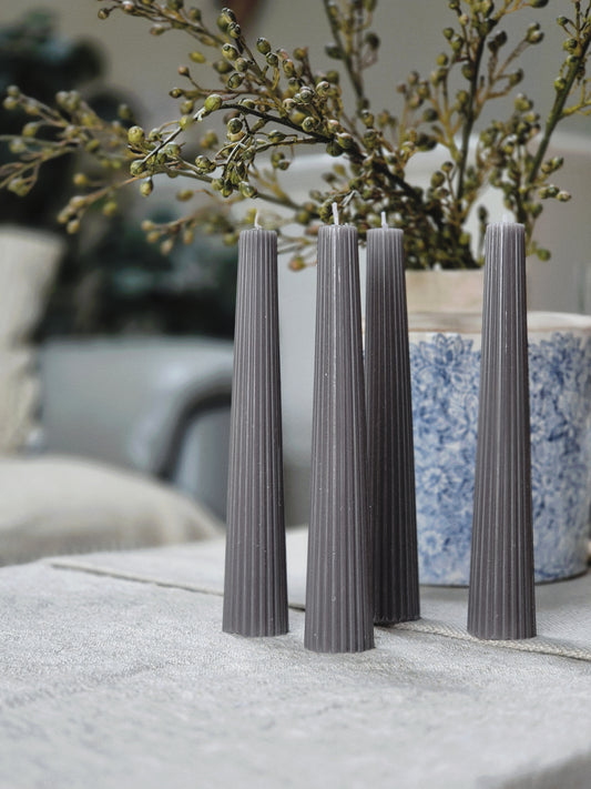 Ribbed Taper Candle | Charcoal