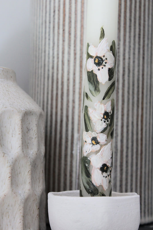 White Magnolias | Hand painted candle