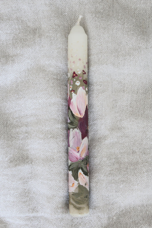 Sold outPink Magnolias | Hand painted candle