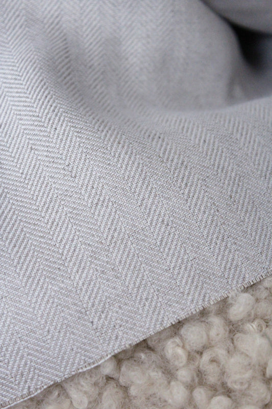 Herringbone Grey Mist Linen Fabric | PRODUCT SAMPLE ONLY