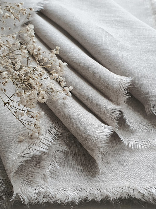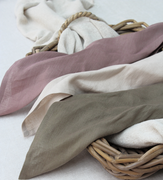 Create a welcoming look at any dinner party with our handmade, sustainable and stylish pure linen napkins and complementing rustic accessories.